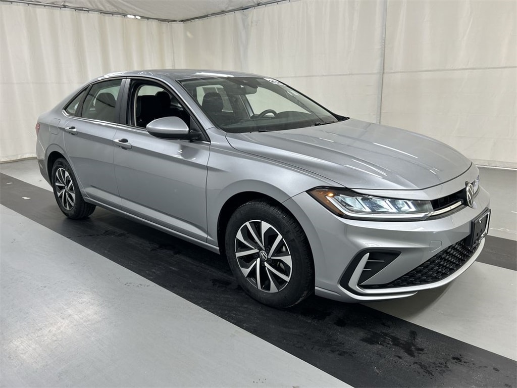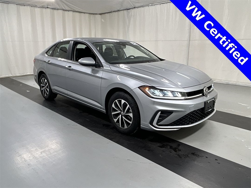 New Price! Certified. Pyrite Silver Metallic 2025 Volkswagen Jetta 1.5T S FWD 8-Speed Automatic with Tiptronic 1.5L I-4 DI DOHC Turbocharged **One owner vehicle**, **LOW miles**, **Qualifies for VW new car 2,000.00 rebate!**, **VW Certified**, Black Cloth.